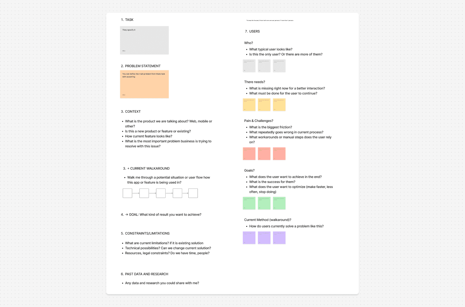 I started with structure, not questions: defined stages, their purpose, and what I need before moving on. Only then added questions that actually move things forward. It resulted in a simple four-block structure: