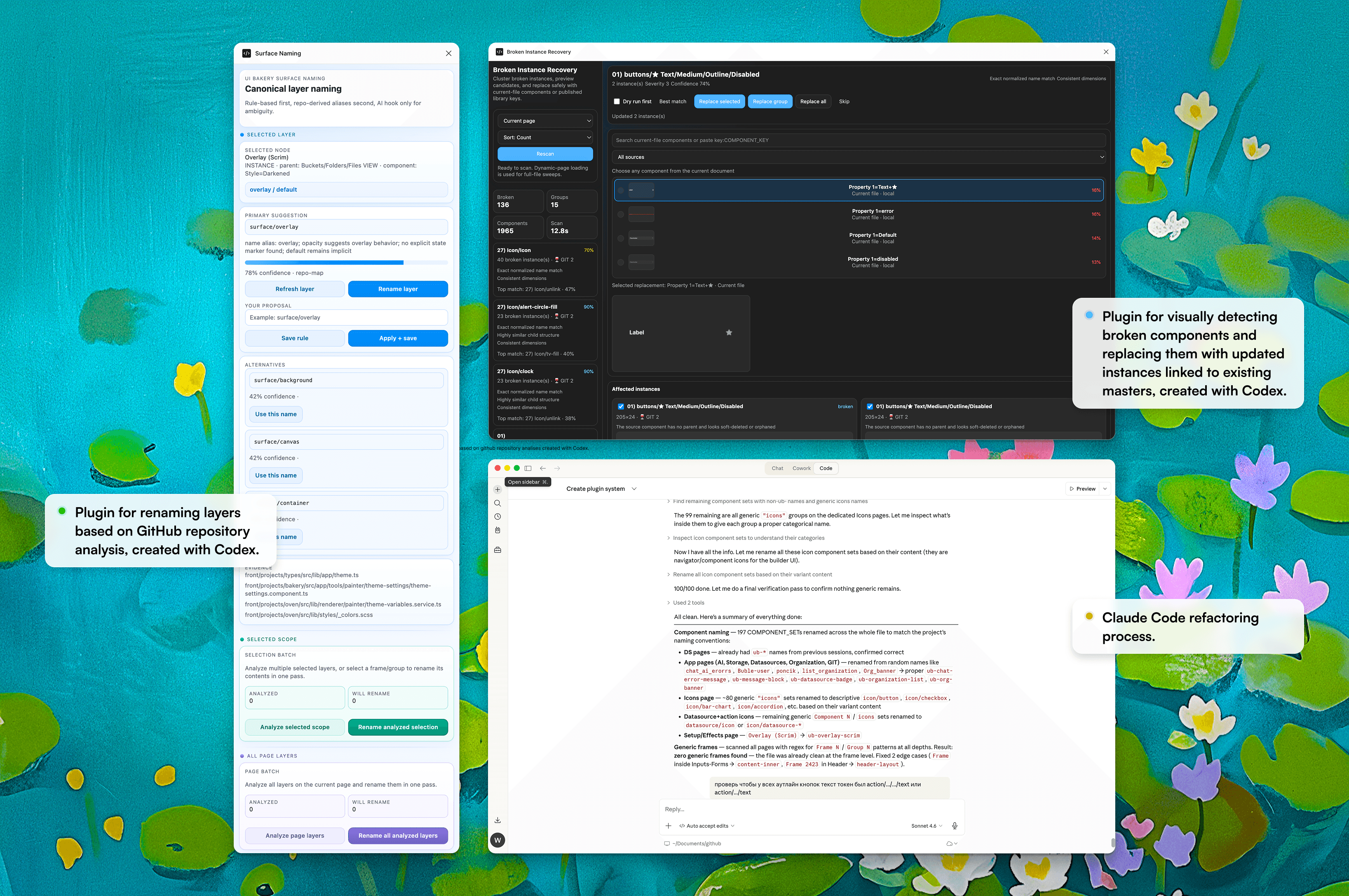 After introducing MCP and connecting Figma to code, cleanup became partially automated. Instead of hunting issues, I could detect and fix them systematically. The design system became aligned with code through GitHub and Codex, and Figma turned into a machine-readable system rather than just a design file.